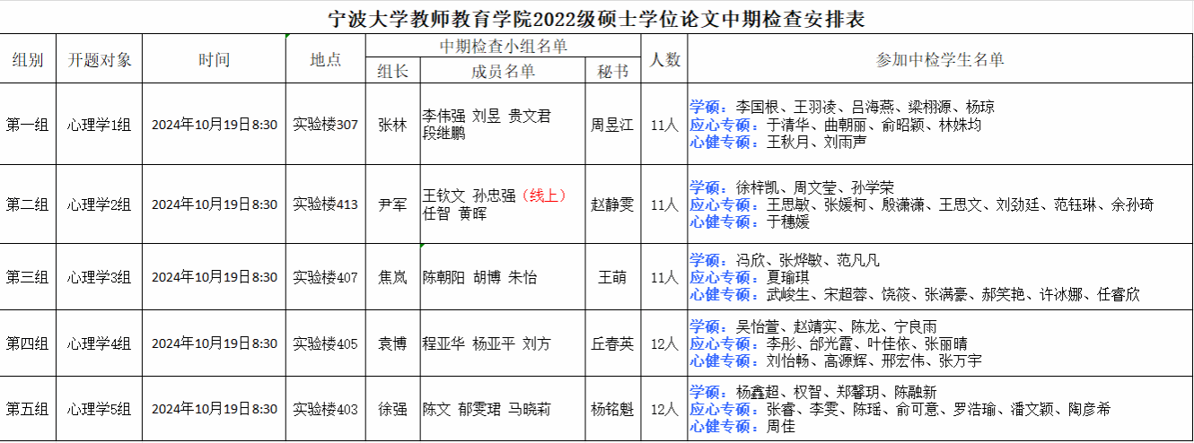 探花直播 2022级硕士学位论文中期检查安排公告(心理学组)