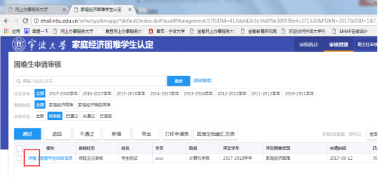 1、 学生筛选出来后,点击某学生申报记录前的“详情”按钮进入某学生家庭经济