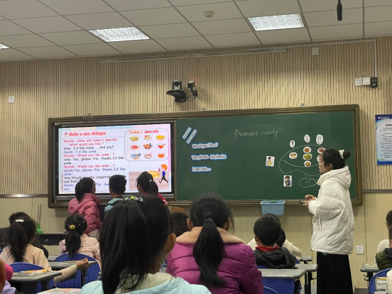 其次,就是同两位老师的课后交流时间,潘莹莹老师给研究生们讲到,小学数学课和其余语文和英语课一样,作为教师一定要使自己的课堂活泼,要多通过游戏和小组PK等方式营造一个积极地课堂气氛。同时,她谈了到了在备课的时,新手教师要把握住教学的“两线”即明线—知识、技能;暗线—情感态度和价值观的习得。而另徐聪聪,分享了自己英语备课的全过程,她通过了歌曲导入、游戏传授、Role play、歌谣巩固等方式组织了整堂英语听说课,给师弟师妹们做了一个好的榜样。