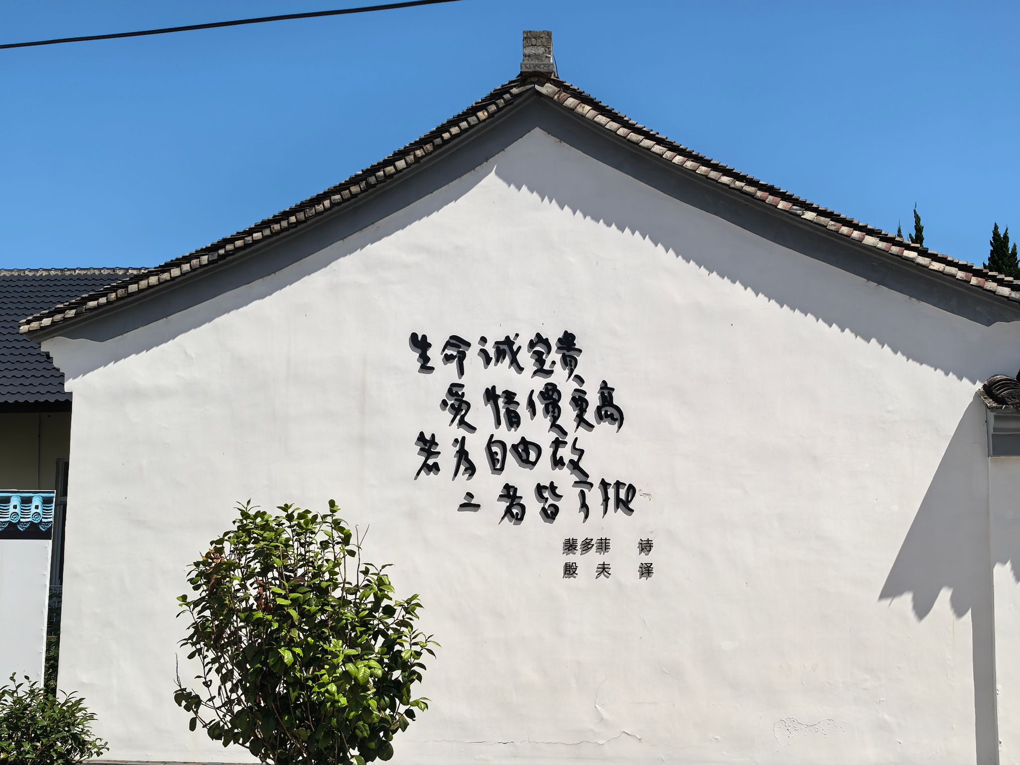 故居内陈列着殷夫的身世资料,摆满了殷夫生前的照片、诗文、译著,以及他使用过的笔墨等遗物。殷夫同志牺牲已经90余年,但他的革命事迹和牺牲精神,是一份值得永远珍惜的精神财富。“生命诚可贵,爱情价更高。若为自由故,两者皆可抛。”这首由殷夫同志翻译的匈牙利著名诗人裴多菲的诗作,正是其悲壮一生的写照。