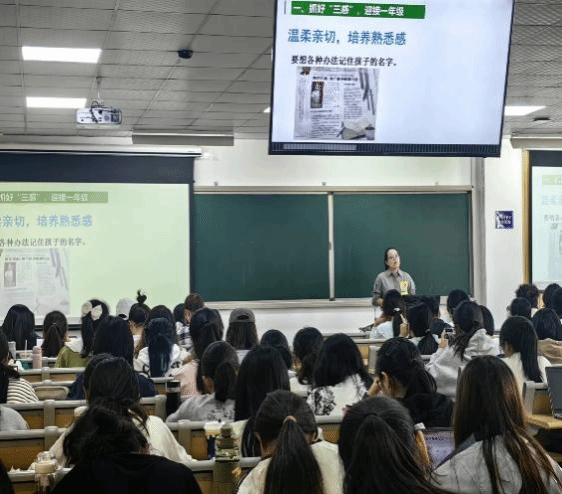 “教育智慧大讲堂”第126讲在包玉书科学楼8号楼303教室成功举行。本次讲座特邀宁波高新区实验学校副校长,小学语文高级教师俞春丽老师为主讲人,开展主题为“十全十美一年级” 的讲座,分享低年级管理经验与策略,小学教育专业23级本科生参加。