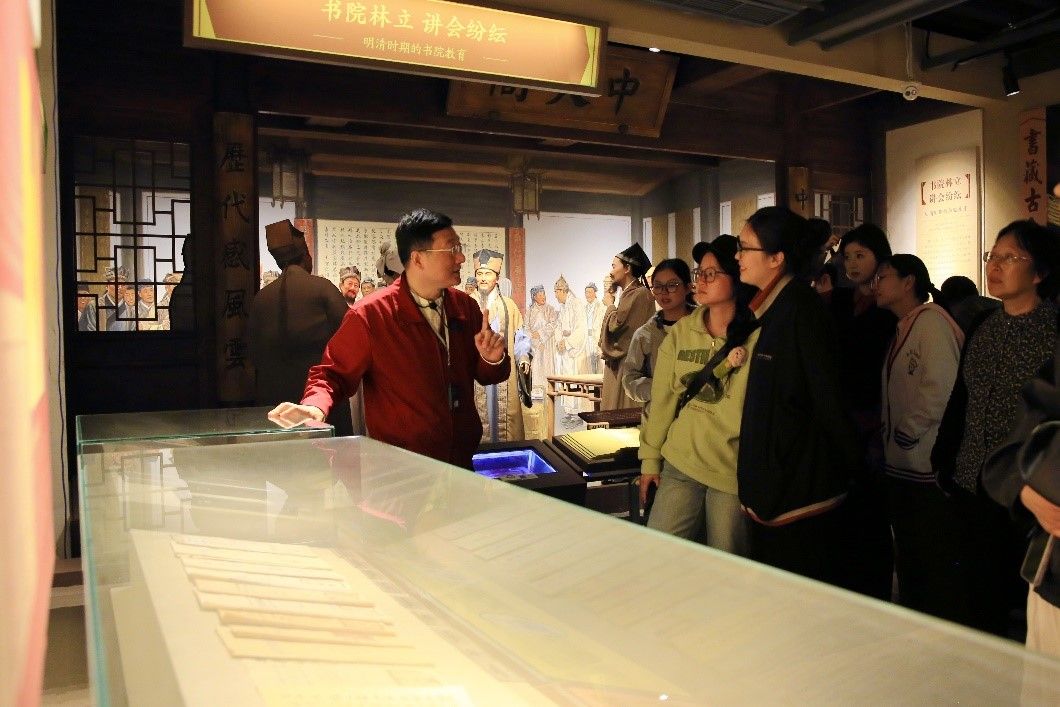 讲解过程中,黄兴力馆长化身讲解员,以导览式的讲解方式带领我们领略宁波市教育博物馆的风光,讲述宁波市教育的千年传承,走近宁波市各领域伟大贡献者的生平。