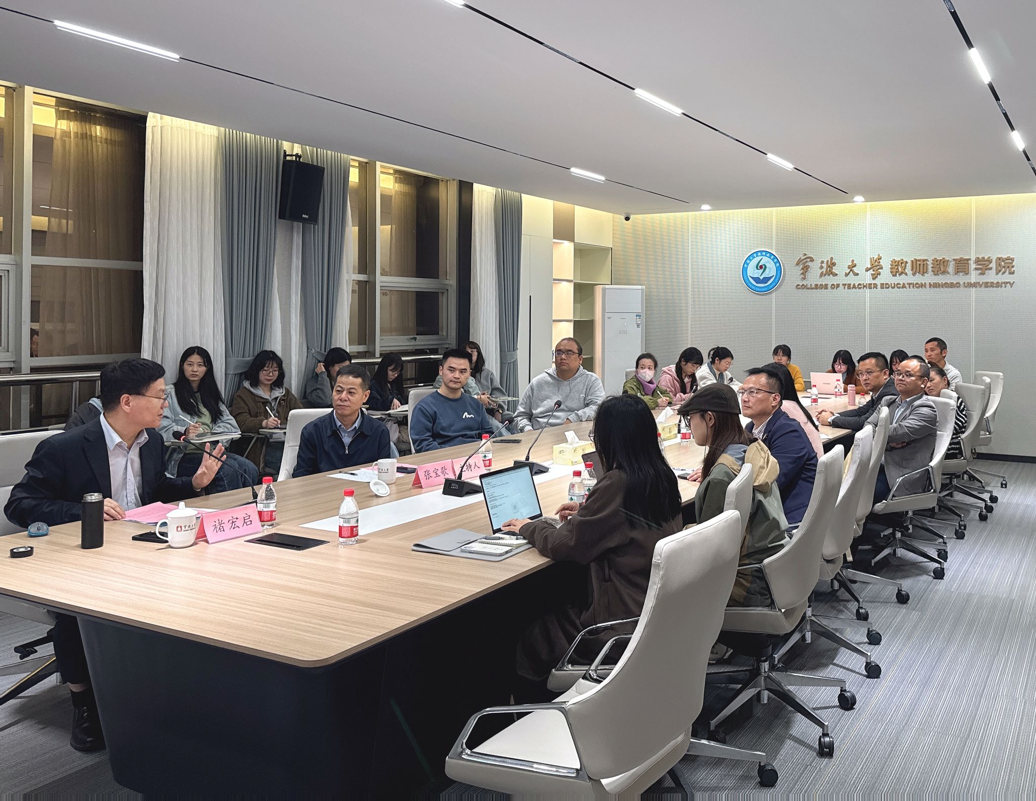 褚教授的学术报告有宽广的国际视野并立足国内教育现实问题,对相关问题有独到和深刻的见解,使与会师生获益匪浅。报告后段褚老师与在场师生作了简短而有热烈的互动,回答了一些师生的提问。最后,张宝歌院长作总结性发言,并代表学院师生向褚教授表示衷心感谢。
