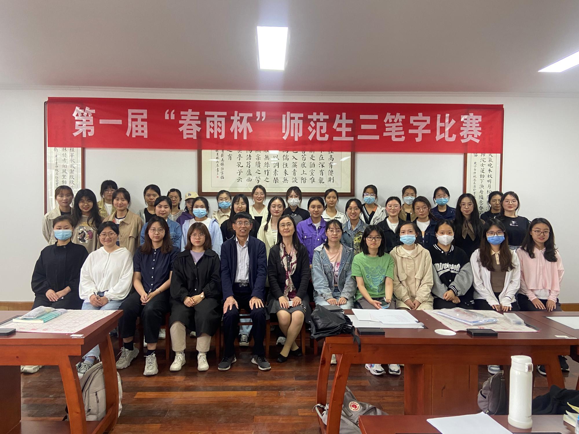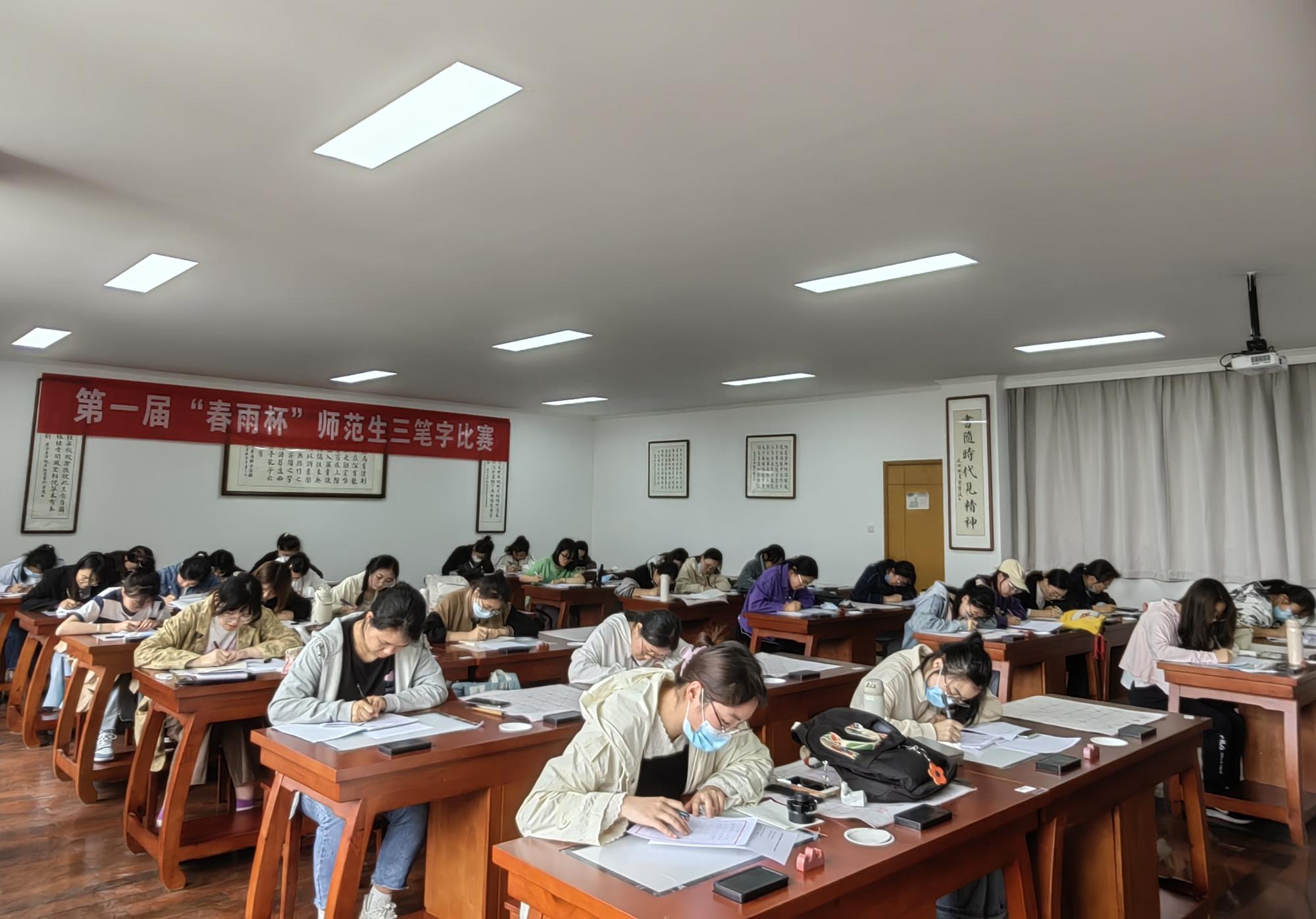 5月18日下午,春雨书院第一届“春雨杯”师范生三笔字比赛在西校区实验楼212、110教室举办。春雨书院以“四有”好教师培养为引领,努力完善师范生培养机制,旨在培养具有人文底蕴、科学精神、教育情怀的高素质、创新型的未来卓越教师。本次比赛以“不负韶华,练一手好字,强化未来教师之职业技能”为主题,设置毛笔字、钢笔字、粉笔字三个参赛类别。副院长李慧仙出席比赛,鲍晓华、谢旭、闫晓姣老师担任此次比赛的评委。