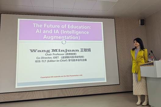 ,为师生带来了一场题为《扩展现实、人工智能工具与教育的未来》(The Future of Education : AI and IA(Intelligence Augmentation)的学术报告。本次讲座由教师教育系主办,李慧仙副院长,教育信息化研究所所长徐晓雄教授,教师教育系主任余利川副教授、副主任戴洪珠博士,学院国际合作与交流办公室(筹备)主任刘鑫副教授,以及十几位教师、研究生与本科生代表等参与了本次讲座。