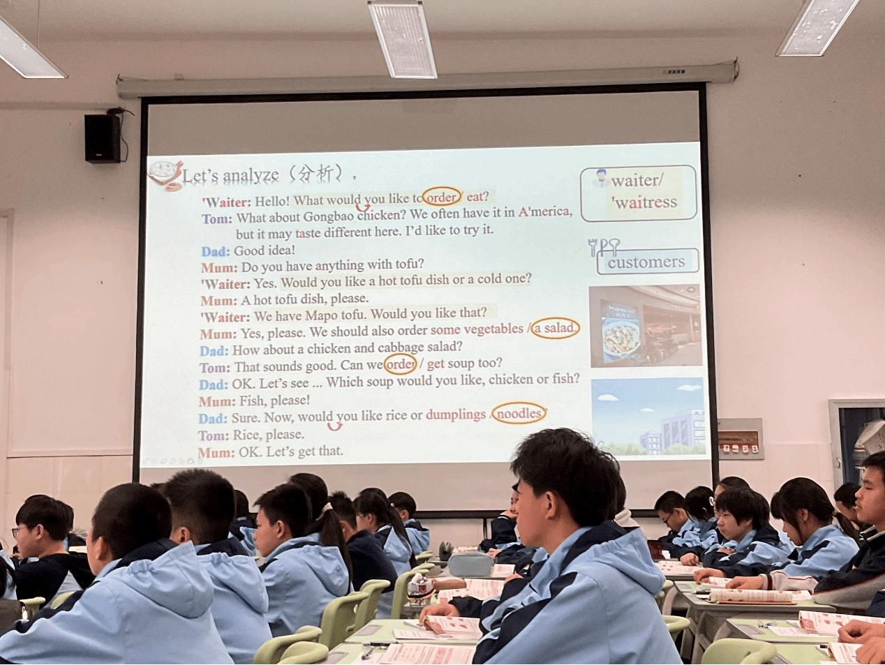 活动分为课堂观摩、说课分享、专家点评三个环节。首先,潘天寿中学陈君捷、陈静燕两位教师分别呈现了七年级下册Unit4的英语示范课。陈君捷老师的“Eat Well”一课,以健康饮食为主线,通过情境模拟、小组互动等多样化教学手段,引导学生思考饮食选择与健康的关系,课堂氛围活跃。陈静燕老师的“What do you like to eat?”一课,注重真实语境的创设,通过连贯的情境设计串联课堂,有效培养学生语言运用能力。