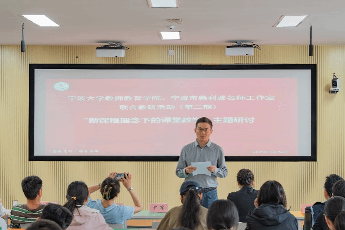 联合宁波市柴利波名师工作室,以“名师领航·课堂解码·人机共育”为主题,举办了一场聚焦新课标与教育创新的教研活动。活动分为教学展示和学术研讨两个环节,分别由我院小学教育系副主任姚佩英和小学教育数学课程负责人林玉慈主持,吸引了百余名师生参与,共同探讨核心素养落地课堂的实践路径及人工智能时代的教育变革方向。