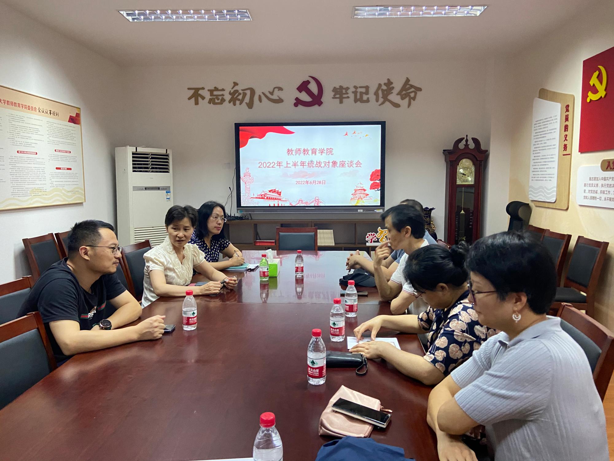 2022年6月28日,探花直播 在实验楼426召开统战对象座谈会。学院党委书记方莹芬、副书记王立衡及学院部分民主党派、统战团体成员教师参加座谈。