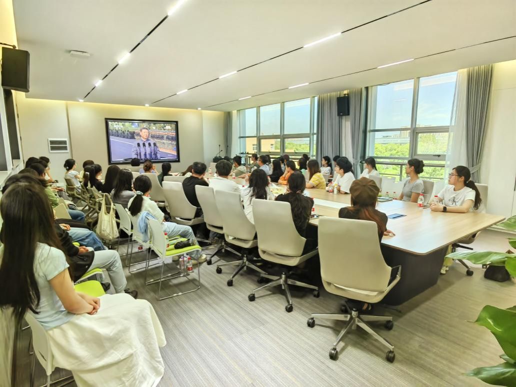 党委第一时间组织师生收看大会实况转播。学院党委班子成员、暑期留校师生代表以及2025级本科新生等260余人,怀着无比激动的心情,分别在教育楼413会议室、朱学林报告厅集中观看庆祝活动盛况,认真学习习近平总书记重要讲话精神。同时,学院党委还积极号召未能集中收看的师生,通过网络直播自主观看,确保每一位师生都能深切感受这一历史时刻的庄严与厚重。