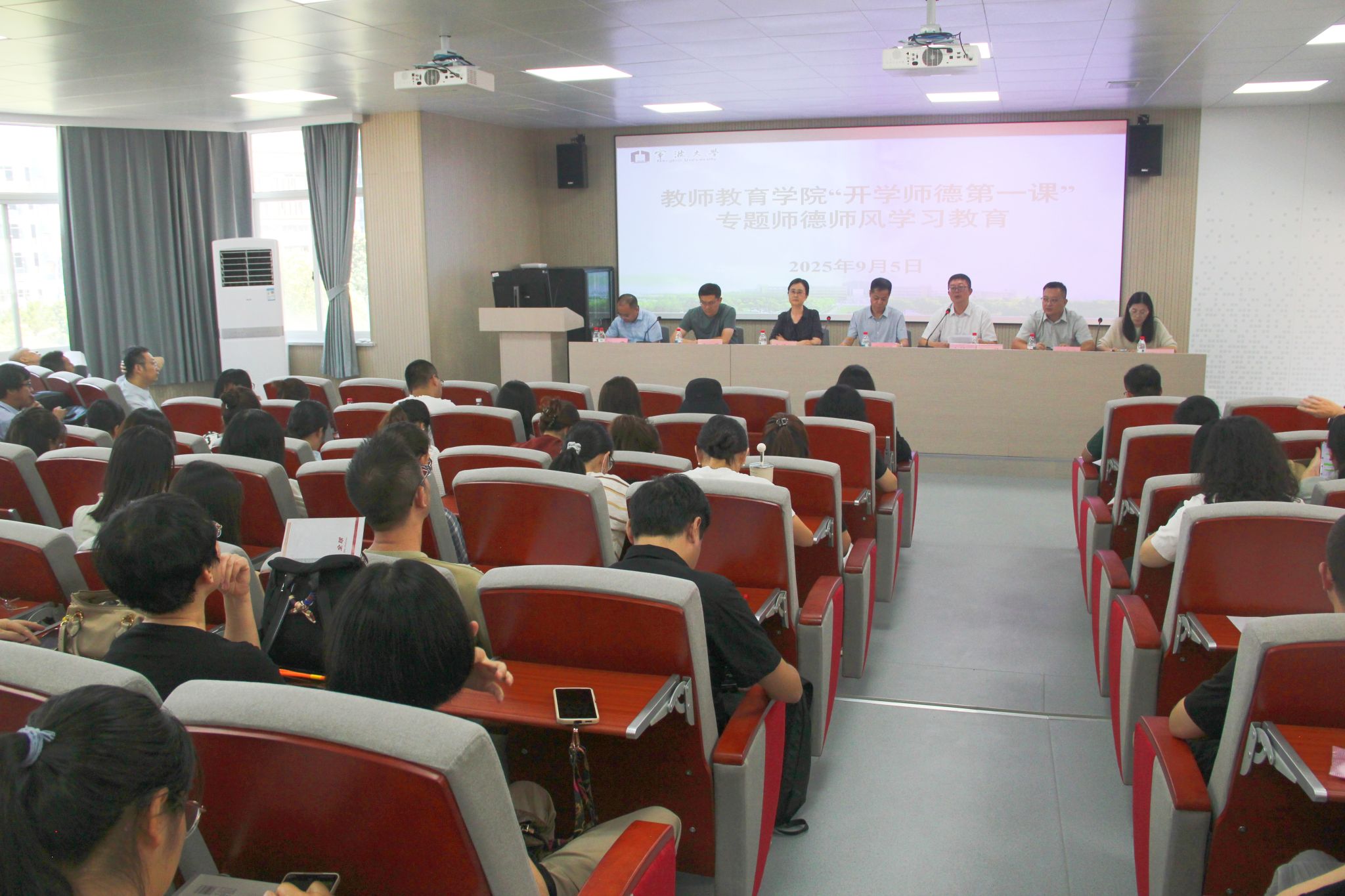 9月5日上午,探花直播 召开了2025年秋季学期首次全体教职工大会暨“开学师德第一课”。学院党委书记张林主持会议,学院党政领导班子成员以及全体教职工参加了会议。会议首先介绍了新入职教工并表示热烈欢迎。接着,各位党政领导逐一发言,通报了本科教学、教学竞赛、研究生教育、就业与新生报到、科研等方面的工作进展,部署了新学期相关任务。学院党委书记张林向会议传达了学校2025年暑期中层领导干部扩大学习会精神。在我国第41个教师节即将来临之际,张书记在大会上带头宣讲“开学师德第一课”,开展专题师德师风学习教育,组织全体教职工一同重温学习习近平总书记关于师德师风的重要论述、《中华人民共和国教师法》、《新时代高校教师职业行为十项准则》等内容。此外,张书记就校园安全稳定相关规定进行了专题学习教育,并针对2025年中秋、国庆期间正风肃纪工作提前进行了部署。张书记强调,全体教职工要以此次“开学师德第一课”为起点,以教育家精神为指引,以严明纪律为底线,不忘初心、牢记使命,在教书育人的道路上勇担新责、再立新功。学院院长张宝歌围绕当前发展形势、学科建设、教学科研、师资队伍等方面,为学院新学期重点工作指明方向,强调全院教职工需树立危机意识、主动适应变革,以实干推动学院高质量发展。在未来规划上,张院长提出三大方向:一是优化调整专业,积极筹建“人工智能+教育”新专业;二是创新硕士点学科建设,对接国家重大需求发展交叉学科;三是持续推进博士点建设,提前谋划学科专业布局。此次大会明确新学期任务、强化师德要求、规划发展方向,为探花直播 秋季学期工作有序开展、实现高质量发展奠定坚实基础。