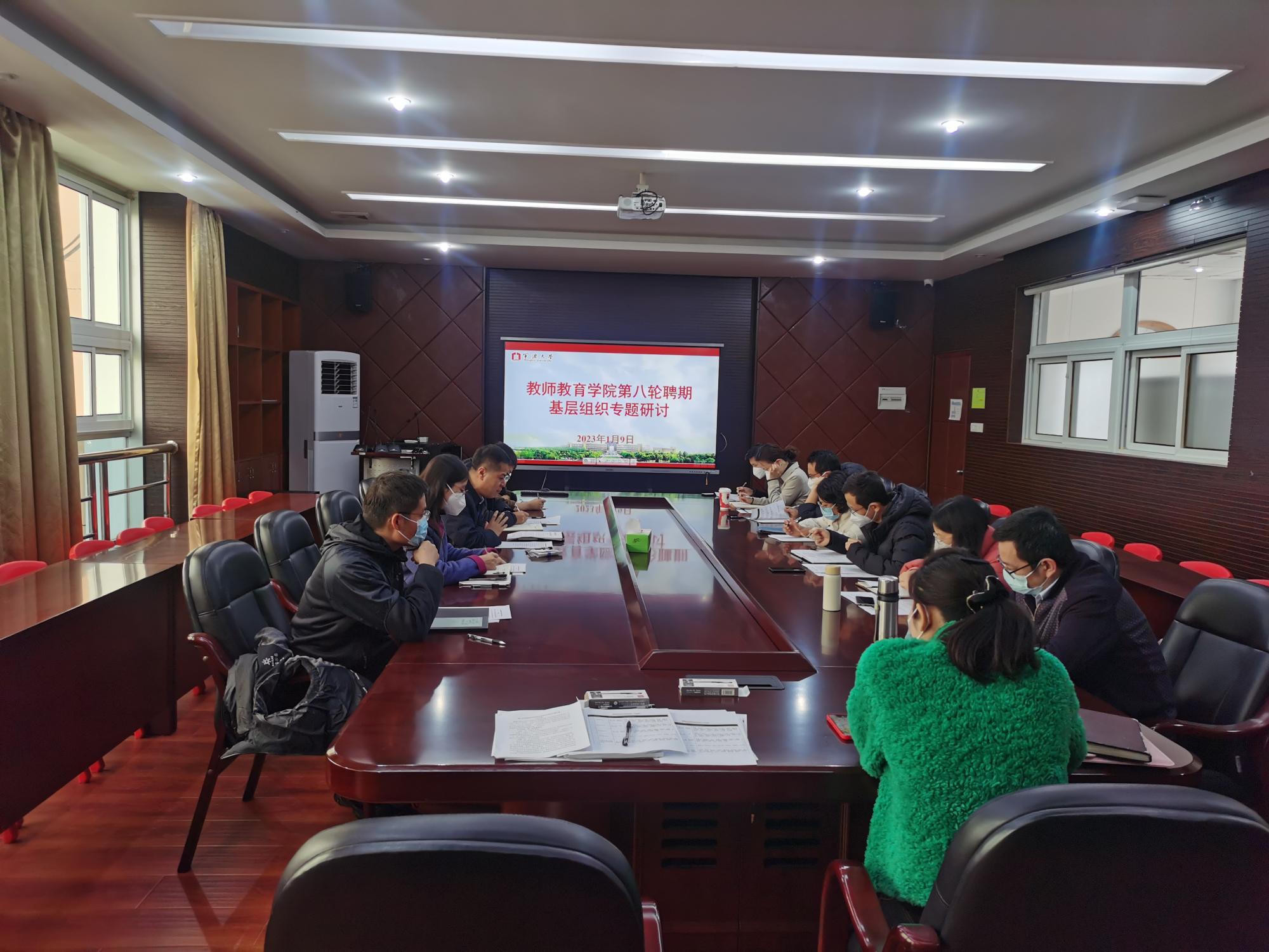新领导班子召开专门针对第八轮聘期学院基层学术组织“系”设置的专题研讨会。张宝歌院长主持会议,张林、李慧仙、尹军、龚小虹等学院领导及梁明月、姚佩英、于潇、汪洁萍、戚瑞丰、袁恺杰、焦岚、徐强等系主任参加。