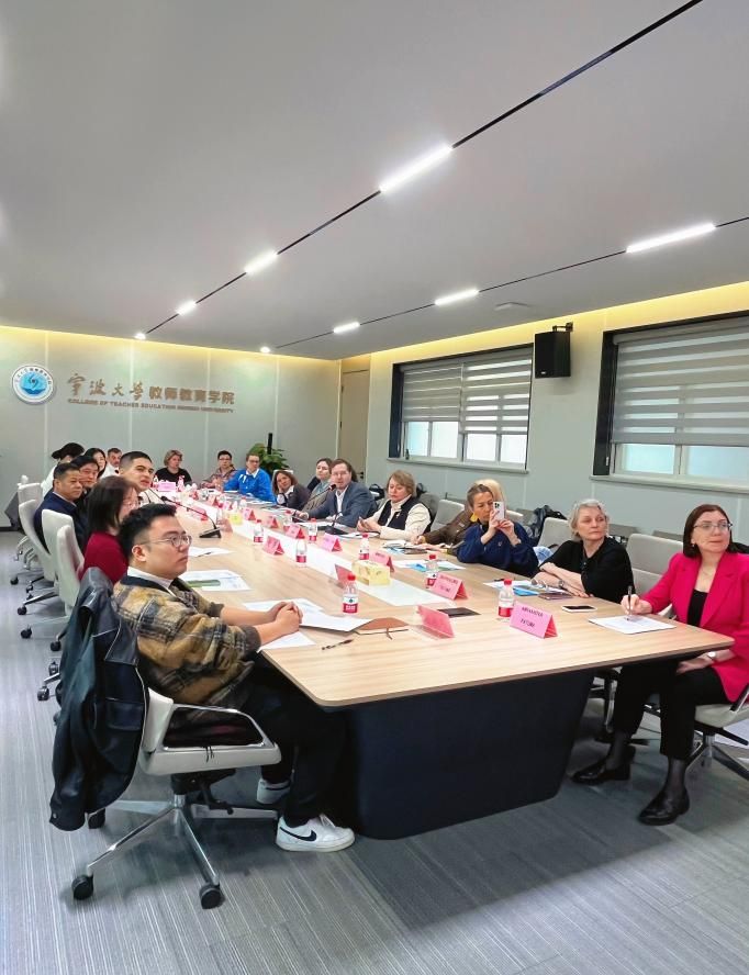 院长张宝歌教授、小学教育系副主任姚佩英老师等院内国际化工作办公室主任、副主任与俄罗斯第548学校副校长KONIUSHENKO LIUBOV、全校汉语教学指导员RODIONOV ANTON及各学科教学指导员共同参会。会议以深化双方情感联结、寻找合作共识、筑牢国际化人才联合培养根基为核心目标。