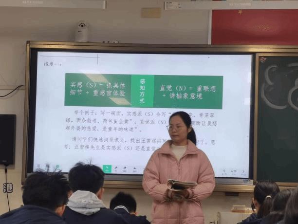 戴梦醒老师执教的《昆明的雨》以一碗热气腾腾的“鸡蛋面”这一生活化场景导入,巧妙链接MBTI人格理论,激发学生兴趣。课堂主要通过以下三大任务层层推进。任务一:解码“实感人格”,引导学生品析文中丰富的感官描写,捕捉汪曾祺笔下昆明雨天的色彩、味道与气息;任务二:解码“情感人格”,带领学生品味人情细节,感受文字背后流淌的温情;任务三:关联“人格与文风”,最终引导学生领悟其“淡而有味”的独特风格。课堂以“我的‘SF’生活速写”作业作结,实现了从文本理解到生活表达的迁移。