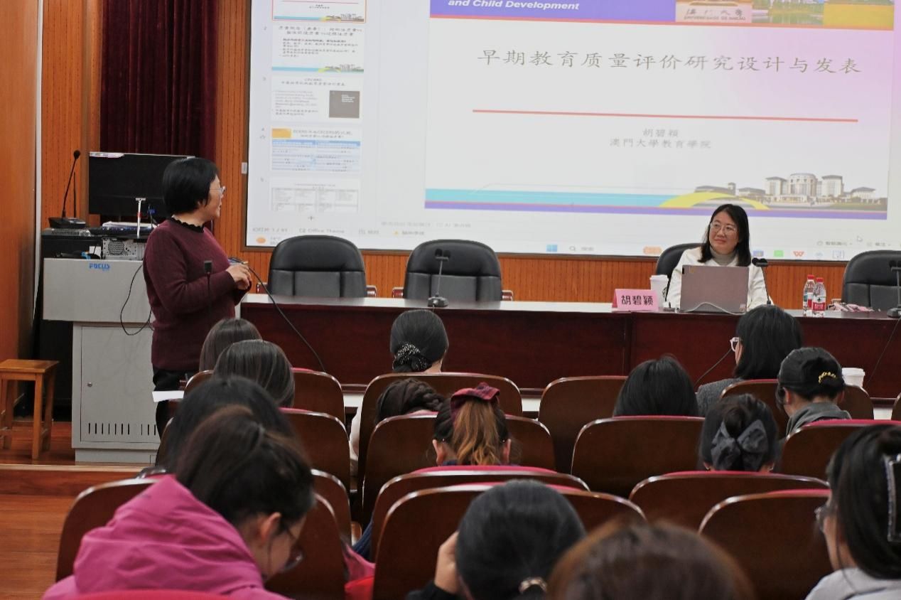 学前教育研究所及学前教育系春雨书院陶润读书社共同主办,特邀澳门大学教授、博士生导师,国际期刊 Learning and Individual Differences 副主编胡碧颖博士担任主讲,主题为“早期教育质量评价研究设计与发表”。讲座由陶志琼教授主持,学前教育专业研究生、本科生及部分校内外导师、实践基地教师等共同参与。