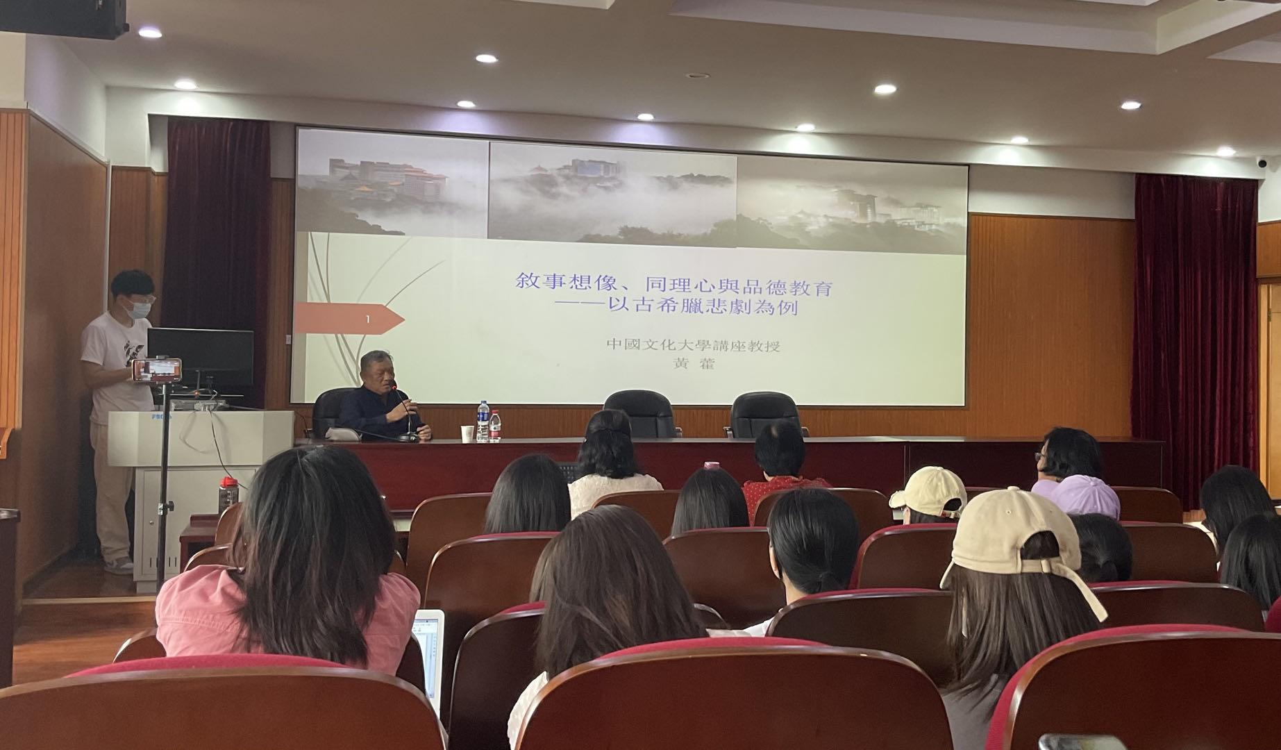 “雪门讲坛”第39讲学术报告在实验楼211展开。台湾地区中国文化大学哲学系黄霍教授向我们做了主题为“叙事想象、同理心与品德教育——以古希腊悲剧为例”的报告,陶志琼教授担任本次学术活动主持人。本次学术活动的主要参加者是探花直播