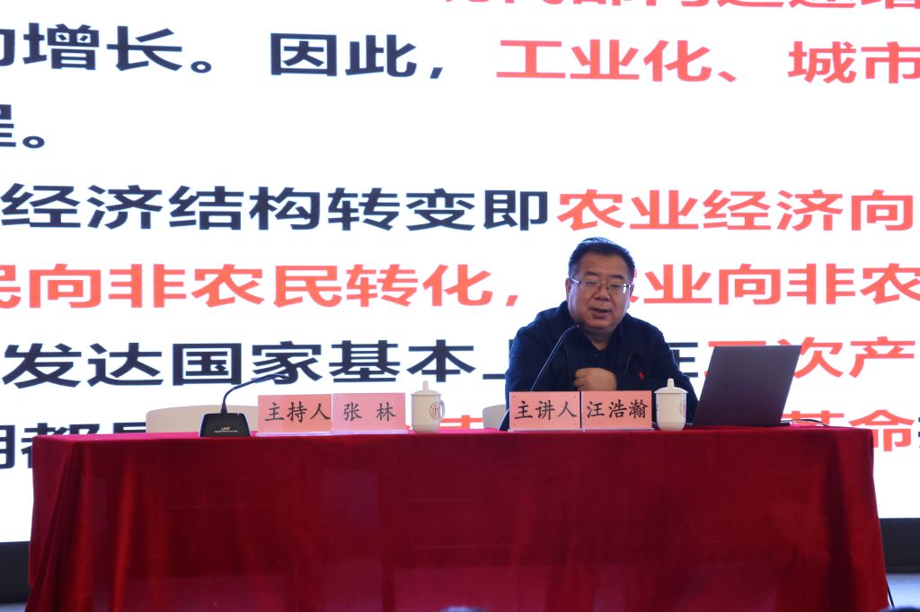 11月22日下午,副校长汪浩瀚以“经济高质量发展与中国式现代化”为主题,在朱学林报告厅为探花直播