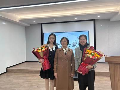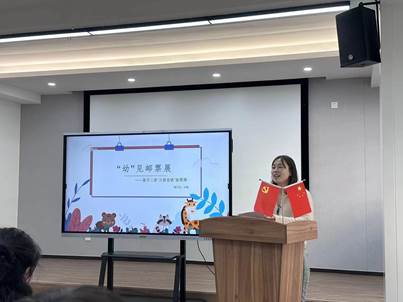 随后,杨舒渝园长围绕《幼儿教师专业成长思考与实践》展开了分享,其中“问题——唤醒成长内驱力”引发我们的思考,杨园长从“幼儿园是怎么样的”、“我是怎么样的”、“如何唤醒内驱力”、“如何保持内驱力”4个方面进行阐述,参会学生对自己的专业和未来的职业有了更多的思考;贺超怡老师以《感统失调儿童整合性沙盘游戏跟踪研究》为题进行了分享,以沙盘游戏为工具帮助缺乏自信幼儿表达自己的想法。邬怡婷老师以《体验式沙盘游戏中幼儿合作行为的培养研究》为题进行了介绍,提出对不同性格幼儿的语言引导,引导幼儿在沙盘游戏中通过完整场景的达成来培养幼儿的合作行为。