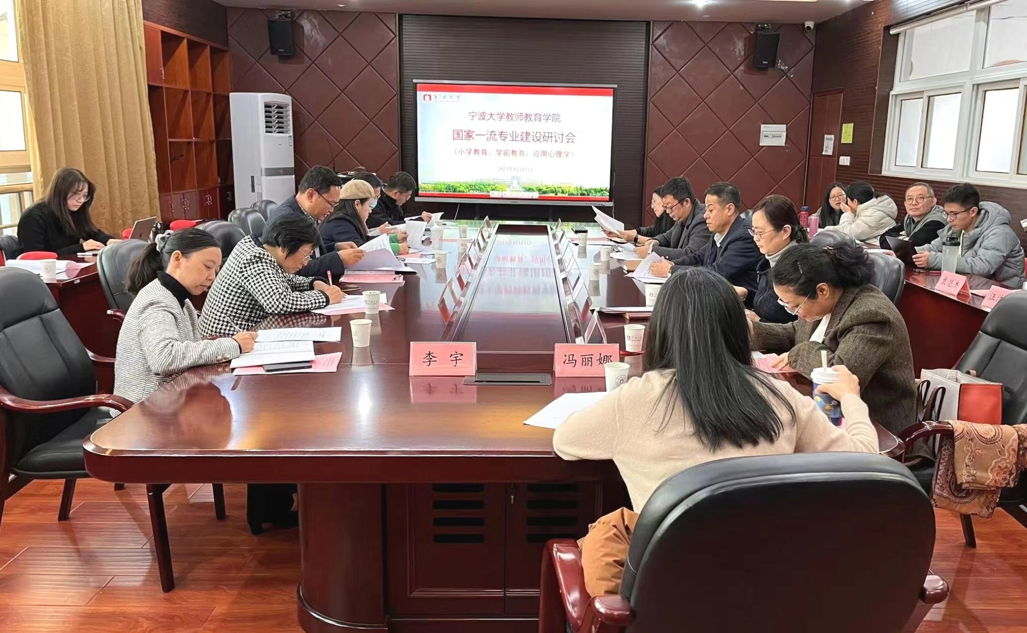 小学教育、学前教育、应用心理学国家一流专业中期建设研讨会在实验楼307召开。本次参会人员有:专家王蕾教授、刘举教授、周勇教授、陶志琼教授,学院院长张宝歌教授、书记张林教授、副处长兼副院长李慧仙、副书记龚小虹,各系正副主任,教务办主任和各系骨干教师等,会议由教学副院长尹军教授主持。