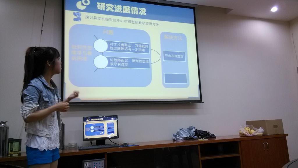 首先,常文豪同学以“我国多媒体视觉搜索研究现状分析——基于2002—2012年CNKI论文的文献计量和内容分析”为主题,向我们呈现了他的研究成果;冯颖倩同学,围绕“培养大学生批判性思维的提问模型构建及其实证研究”,向大家呈现自己关于pual模型提出自己的提问模型并进行了异步在线交流学习及思考的过程。围绕两位报告人的精彩呈报,台上台下进行了深入交流,缜密的思维,独到的见解,犀利的言语不断将活动推向高潮。