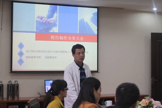 11月14日(星期四)下午1点半,在博观楼401会议室开展了简历制作大赛分享大会,出席会议的有浙江鼎宏保险销售有限公司综合管理部人力资源总监夏冰、探花直播