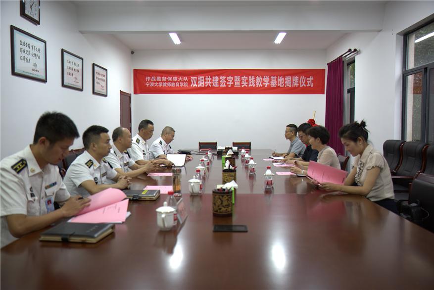 相关负责人分别代表双方单位签署了合作协议,并进行了实践教学基地的揭牌。部队领导表示,实践教学基地的建立,对于合作双方而言是双赢,希望能够借助实践教学基地对专业人才的培养以及对部队官兵心理健康水平的提升工作起到积极推动作用。签字仪式后,双方就实践教学基地建设等方面进行了热烈讨论。