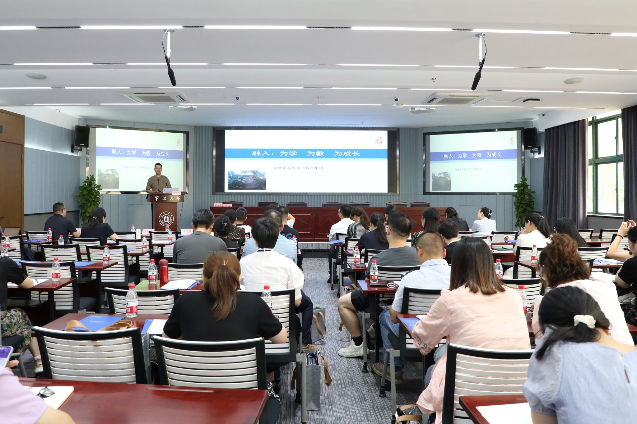 余姚市东风小学教育集团的茅鸿科主任以《融入:为学 为教 为成长》为题,分享了该校在师范生培养方面的探索。学校通过培育教育情怀和优化实践课程,为学生提供新的成长生态系统,构建可持续发展的“三级四维”培养路径。通过跟岗实践、特色见习等活动,引导教师学会教学,学会育人,学会发展,使其在“思”与“学”中收获真知,并努力做到知善、能善、行善和乐善。