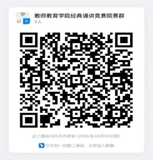 经典诵讲竞赛院赛群”,并将群昵称改为“姓名+参加赛事”,钉钉群二维码如下: