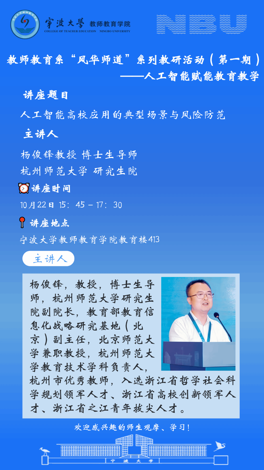 讲座主题:人工智能高校应用的典型场景与伦理风险防范