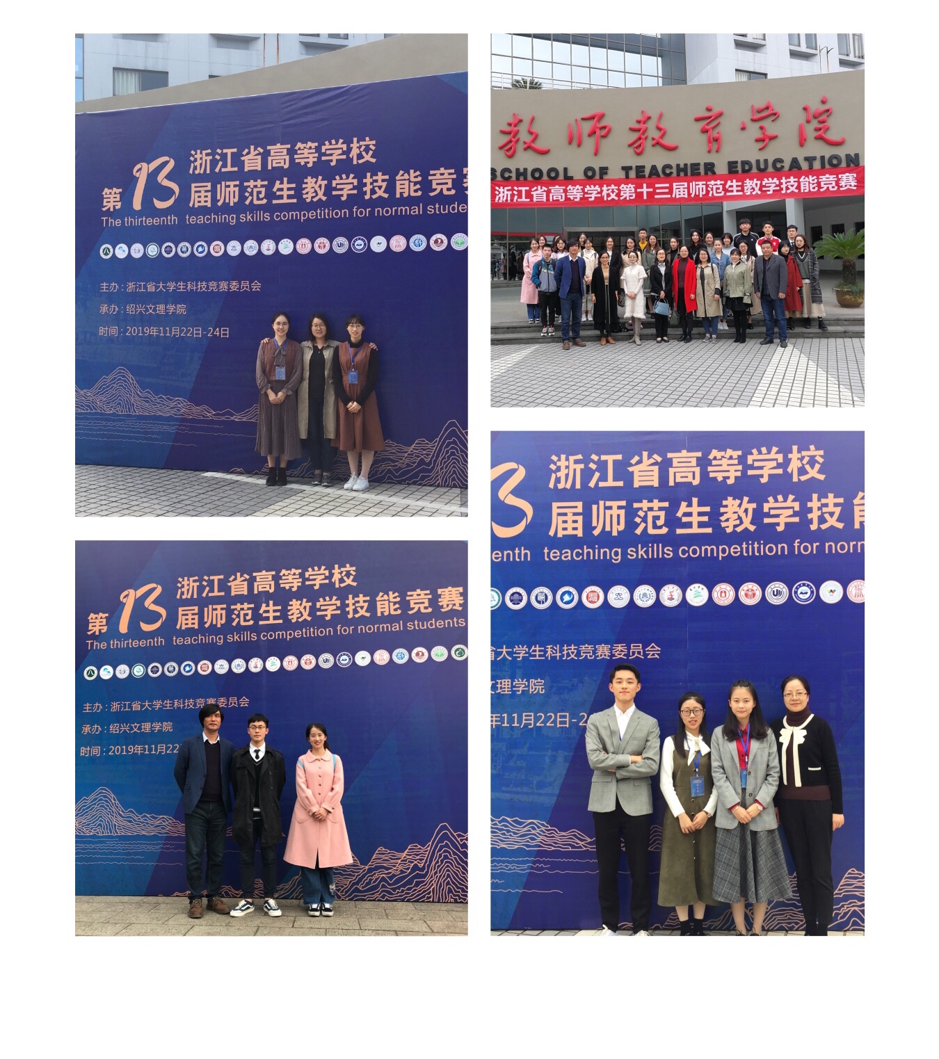 11月23日-24日,由浙江省教育厅主办,浙江师范大学、绍兴文理学院承办的“浙江省第十三届师范生教学技能竞赛”在绍兴文理学院举行, 普通组经过“即席讲演”、“模拟上课”与“现场答辩”,学前组经过“说课”、“儿童故事讲述”、“艺术能力展示”各3个环节的比赛,我院7位参赛选手共获得1项一等奖、1项二等奖、2项三等奖、2项优胜奖的好成绩。