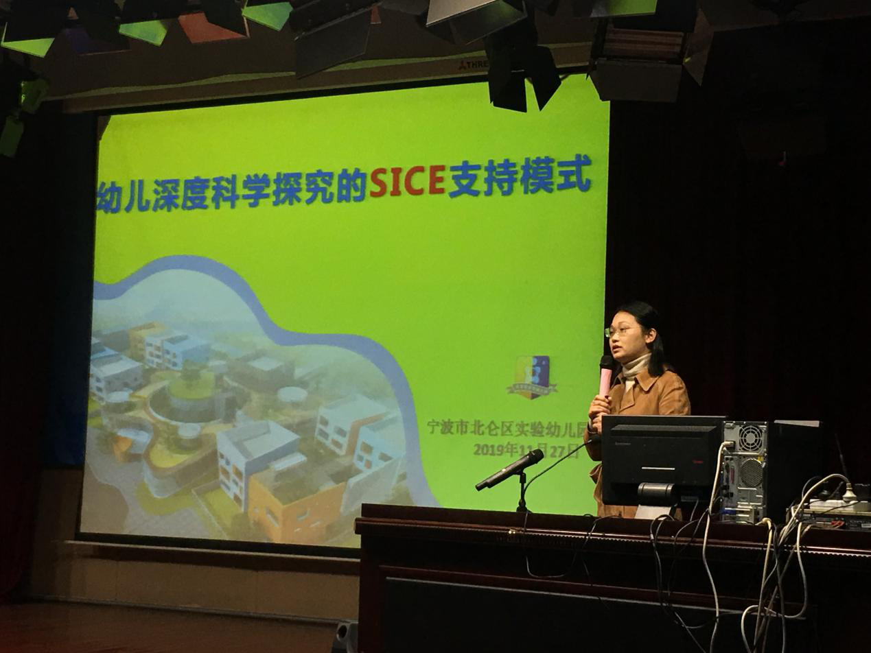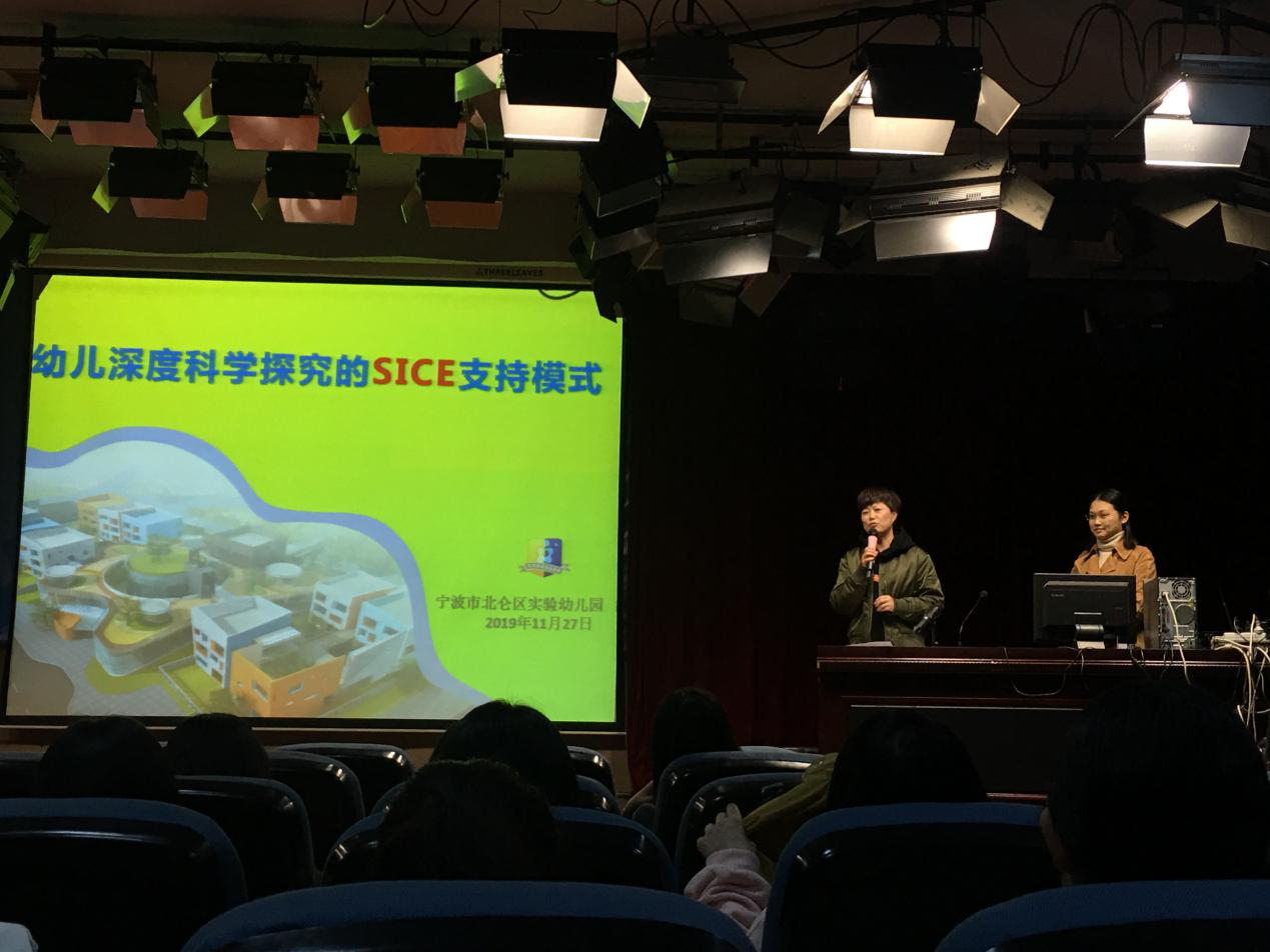 教育智慧大讲堂第104讲“幼儿深度科学探索的SICE支持模式”在西区实验楼506成功举行。讲座由宁波市北仑区实验幼儿园园长胡蓉主讲,学院学前教育系系主任汪洁萍教授主持,学前专业各年级同学参加了本次讲座。