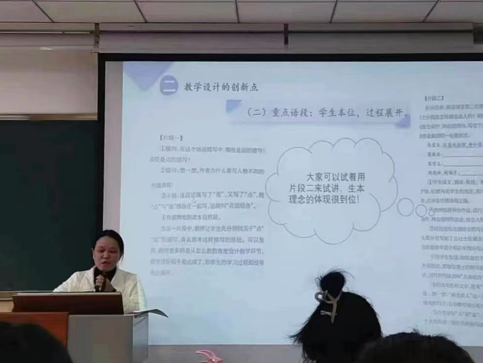 讲座即将结束时,嵇老师让个别同学进行试讲展示,并针对性地进行点评。这堂独特的“讲座+试讲展示”的课堂在同学们的认真听讲中逐渐结束。通过今天的讲座,同学们收获颇丰,受益匪浅!
