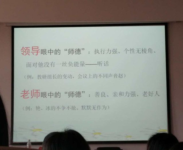 首先,周老师从自己的经历和背景出发,讲述了自己对从事学前教育的感受和体会,进而引出本次讲座的主题——师德教育。随后,周老师阐述了师德的概念,并对目前幼儿园中普遍存在的师德现状和幼儿教师遇到的困惑两个方面为同学们进行了分析与讲解,得出“师德就是先做人后做事”的观点。接着,周老师提出了“师德有哪些?”的问题,启发现场同学们积极思考、讨论交流,得出“心理上的师德”是善良、友好、知足、感恩、积极;“行动上的师德”是沟通、合作、细节、执行力、敬业这两个观点。