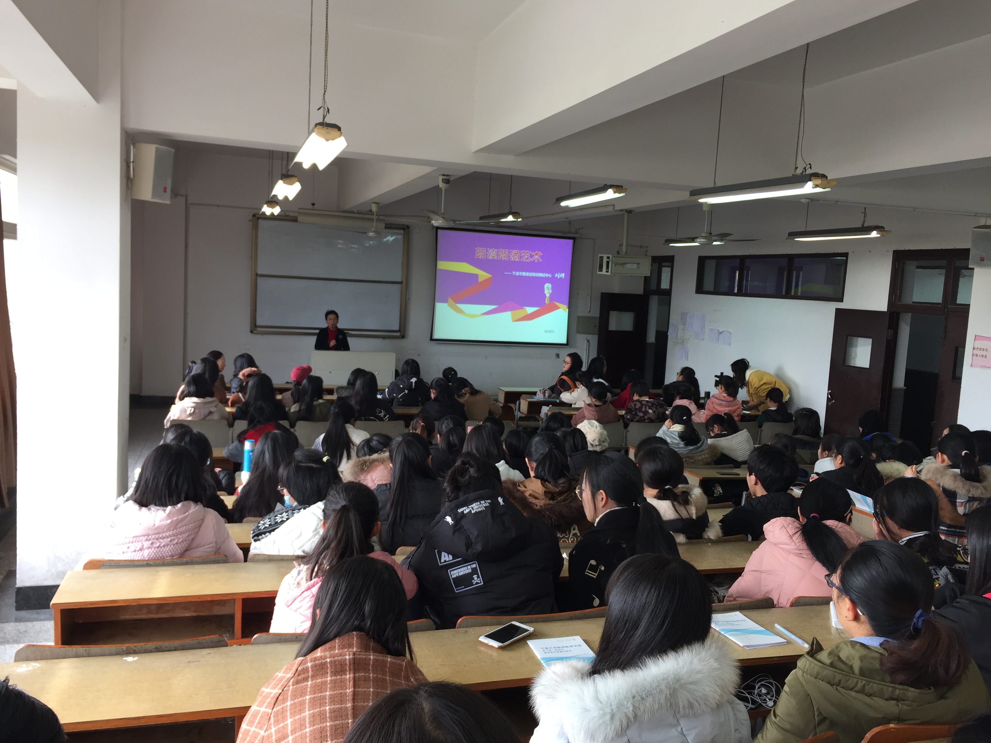 12月6日下午一点,我院“教育智慧大讲堂”第八十七讲“朗读朗诵艺术”在四号教学楼105准时开讲。讲座邀请了宁波市普通话测试中心刘群老师主讲。17级小教专业学生到场聆听。