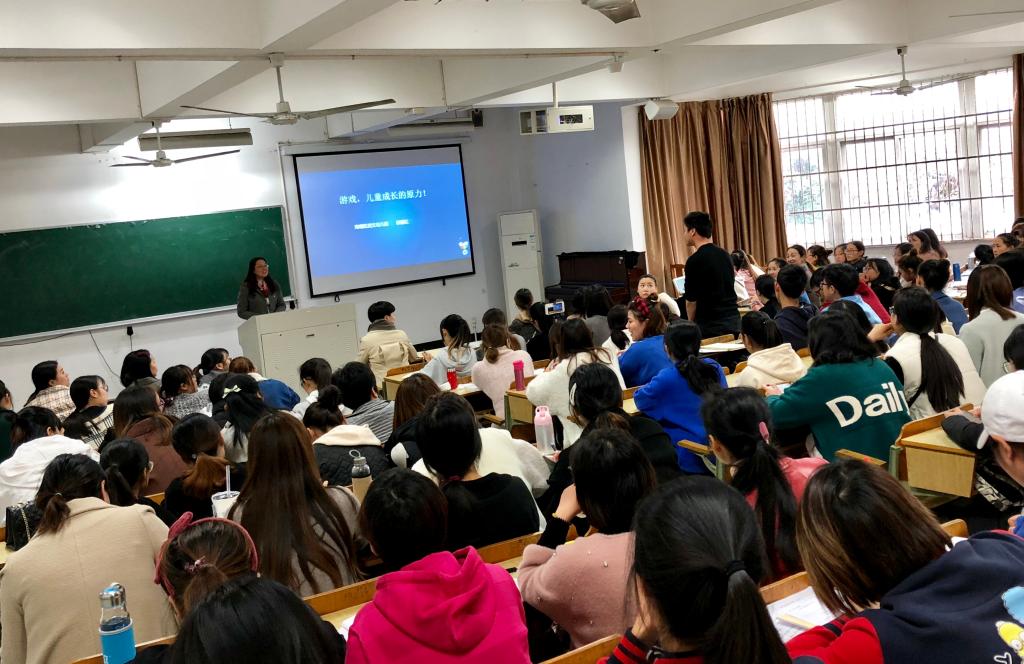 邵老师以她多年的幼教专业知识和丰富的教育经验,围绕当在学前儿童游戏过程中的环境、材料、互动、能力发展等多方面的问题,用生动的授课语言、鲜明的案例分享一一做出了解答,把真正适合幼儿游戏学习的教育理念和方法,有效地传递给了在座的所有同学,全场聆听者受益匪浅,不时送上阵阵热烈的掌声表示支持认同!