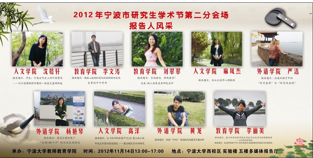 由宁波市研究生学术节组委会主办,我院研究生会承办的2012年宁波市研究生学术节第二分会场将于近日举行,现将通告如下: