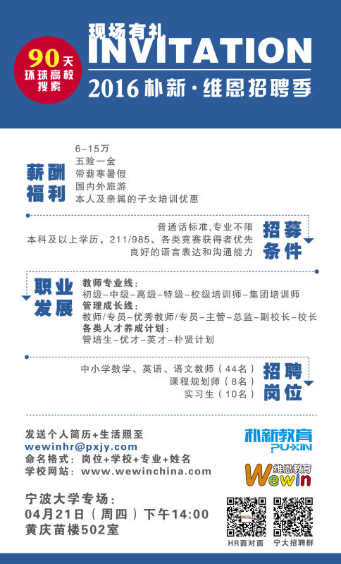 6. 总部面试地址:浙江省宁波市江东区 桑田路 722 弄 16 号 3 楼维恩教育 人力资源部