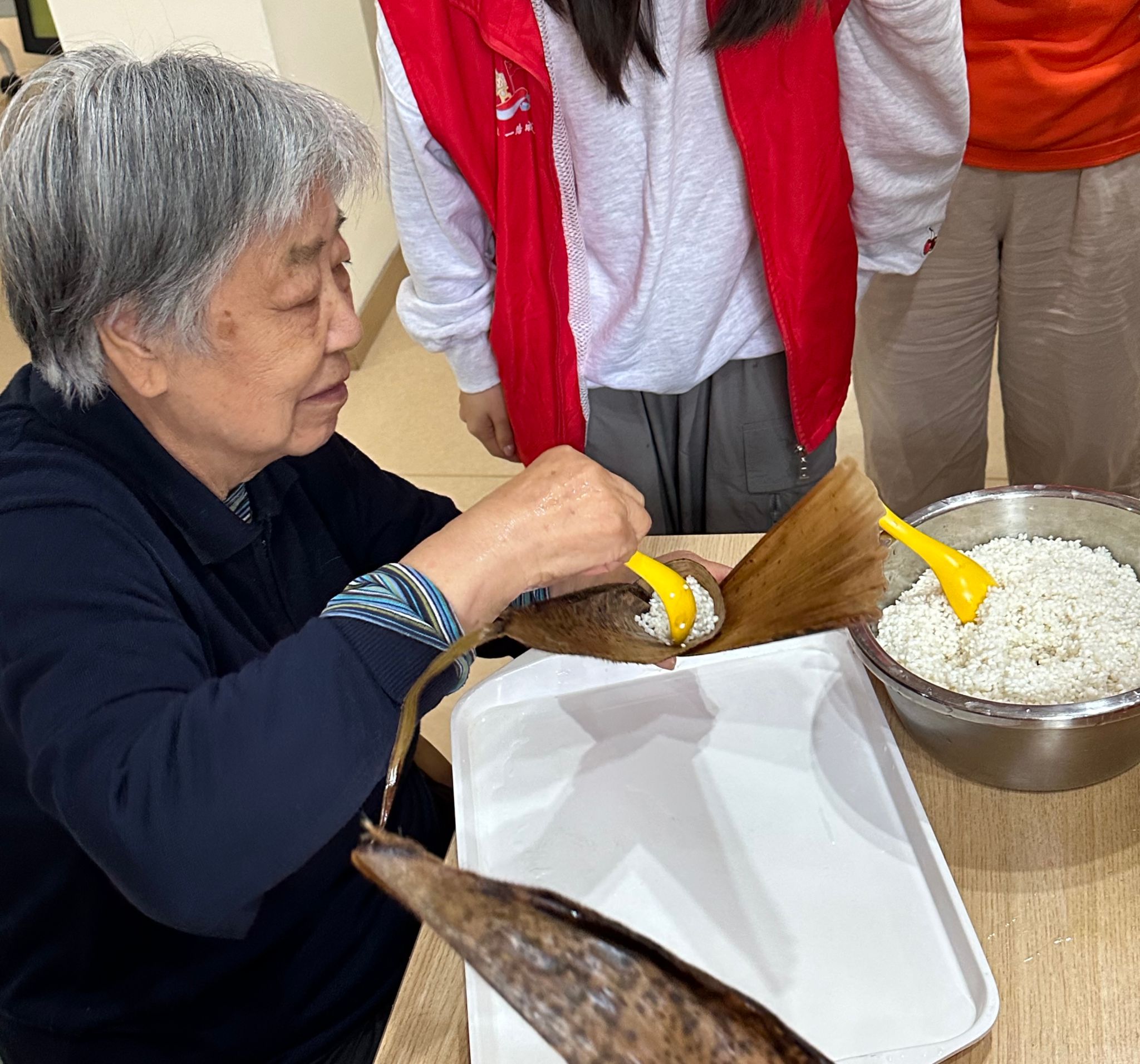 随着主持人介绍完毕,活动便正式开始了。从轻松愉快的拍手操到端午节日由来的介绍与回顾,从充满欢乐的团体小游戏再到爷爷奶奶们一起包粽子的快乐时光,爷爷奶奶们在一片欢声笑语中脸上绽开了灿烂的笑容,志愿者们也被老人们的幸福所感动,在平凡的日子里感受到了喜悦。