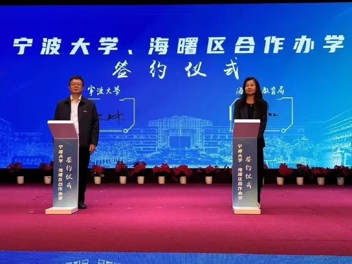 对海曙区经济社会和教育事业发展的贡献与支持,指出此次合作是“教育强区”有益探索,也是“办好人民满意的教育”重要举措,期待双方合作结出硕果。