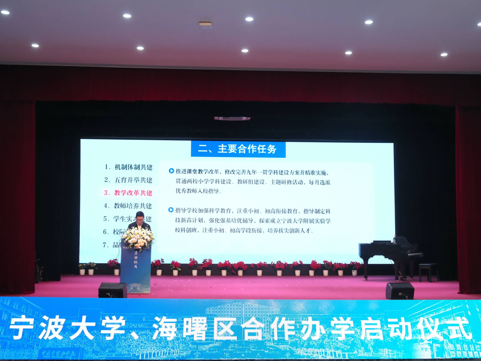 与海曙区合作办学的签约和揭牌。随后,附属实验学校学生奉献了一场精彩的合唱与器乐演出。